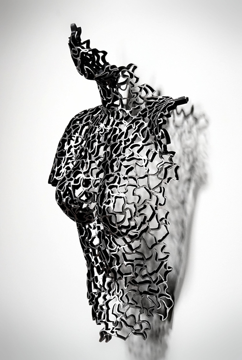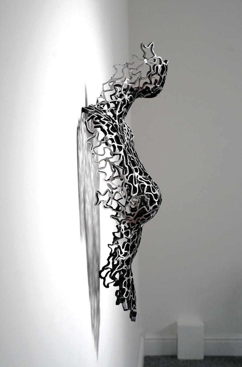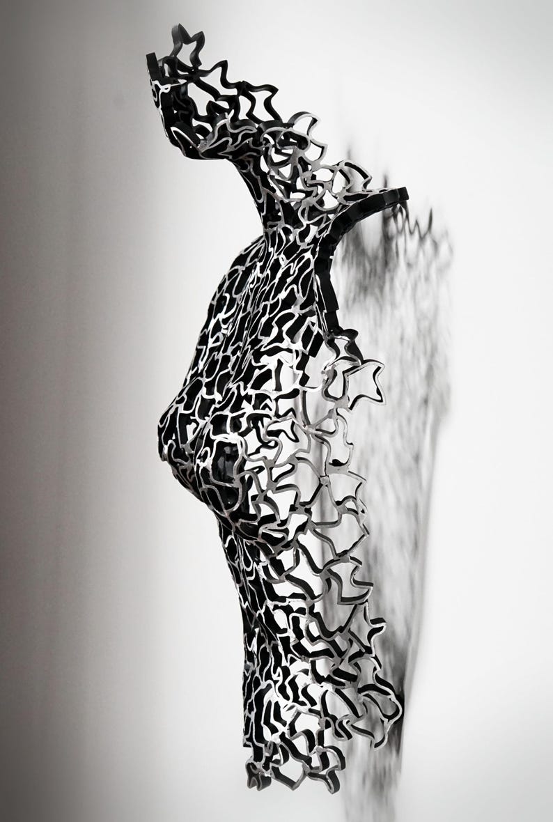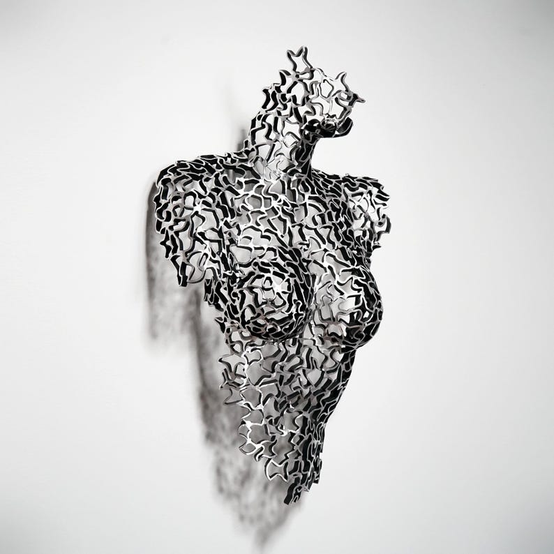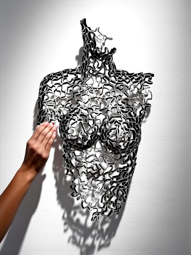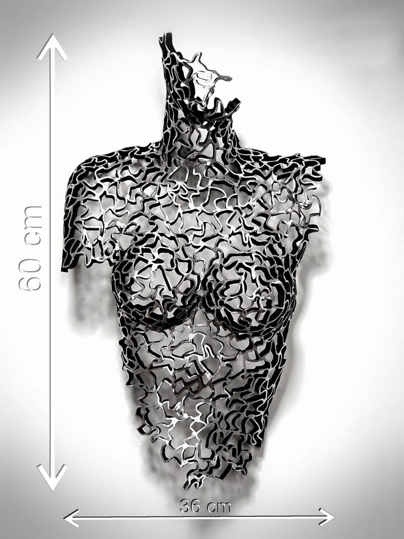 Wall Sculpture – Female Torso Abstract Art | Handmade Openwork in Light Metal